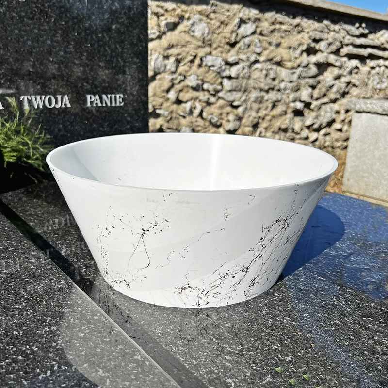 Jedną z najważniejszych cech tej doniczki jest jej wytrzymałość na warunki atmosferyczne. To sprawia, że doskonale sprawdzi się jako dekoracja cmentarna, gdzie kwiaty będą odpowiednio chronione i estetycznie wyeksponowane przez długi czas. Lekka konstrukcja ułatwia jej przenoszenie, a łatwa w czyszczeniu powierzchnia pozwala na zachowanie nienagannego wyglądu przez lata. Doniczka o wymiarach 35×16 cm zapewnia optymalną przestrzeń dla korzeni roślin, wspierając ich zdrowy wzrost.