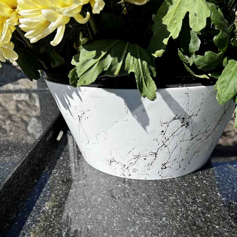 Nasza osłonka na kwiaty o wymiarach 35×16 cm to produkt, który łączy w sobie elegancję, funkcjonalność i wytrzymałość. Wykonana z wytrzymałego tworzywa sztucznego, stanowi doskonałe rozwiązanie do użytku wewnątrz oraz na zewnątrz, np. na balkonie, tarasie czy nagrobku. Doniczka na kwiaty została zaprojektowana z myślą o różnych roślinach doniczkowych, a jej nowoczesny, minimalistyczny design pięknie podkreśli elegancję chryzantem.