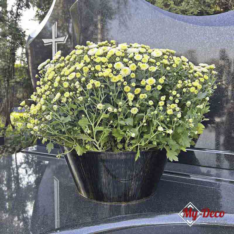 Doniczka na chryzantemy to doskonały wybór zarówno dla osób, które chcą udekorować swoje wnętrza, jak i dla tych, którzy szukają trwałego i estetycznego rozwiązania do dekoracji nagrobnej. W domu czy na balkonie, doniczka wprowadzi odrobinę elegancji i świeżości, idealnie eksponując piękno roślin. Na cmentarzu, jako dekoracja nagrobna, zapewni odpowiednią oprawę roślinom, tworząc trwały i estetyczny element, który będzie się dobrze prezentować przez dłuższy czas oraz w dzień Wszystkich Świętych.