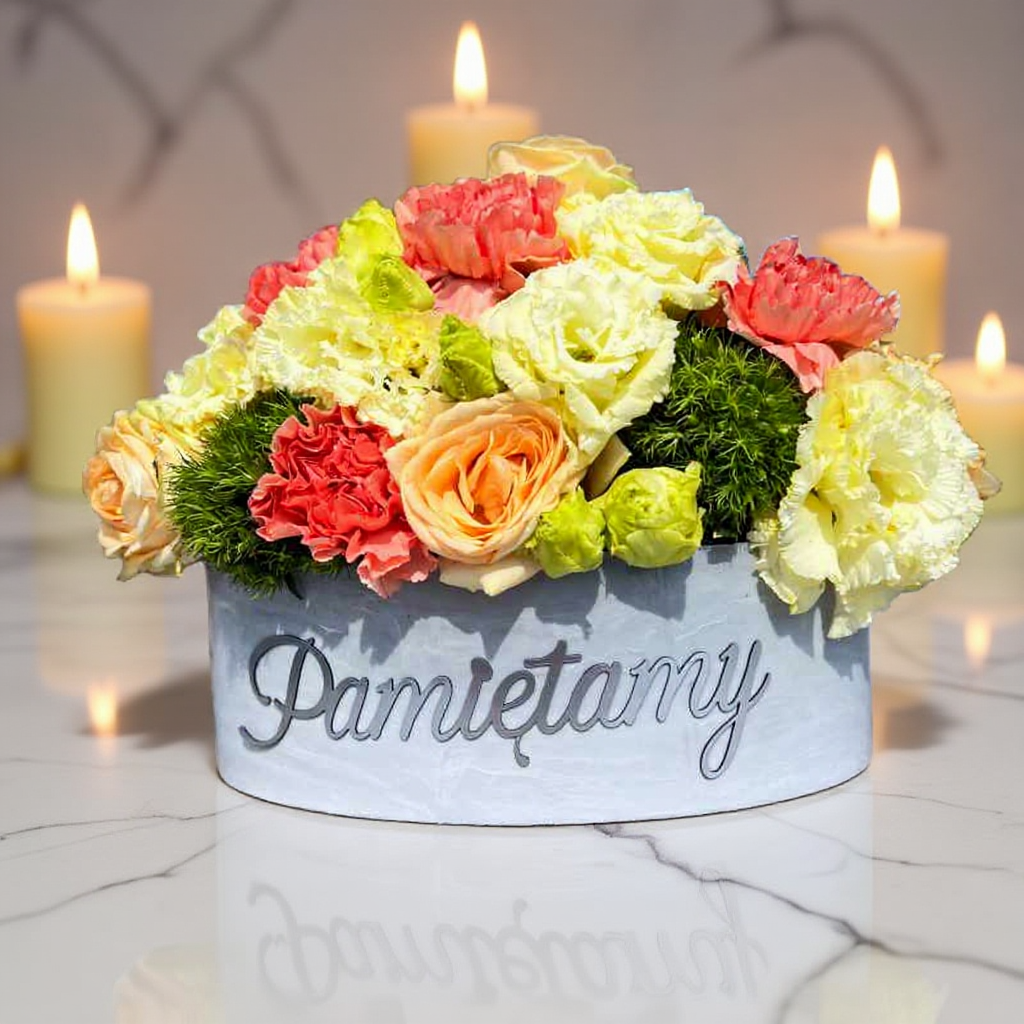 Szukasz wyjątkowej ozdoby, która w elegancki i nowoczesny sposób upamiętni bliskich? Prezentujemy naszą nowoczesną doniczkę do kompozycji kwiatowych Floryda, utrzymaną w subtelnej marmurowej tonacji. To nie jest zwykłe naczynie na kwiaty, to element dekoracyjny, który wnosi na każdy grobowiec niepowtarzalny charakter. Wyjątkowy napis „Pamiętamy”, wykonany ze srebrnego laminatu z efektem 3D, dodaje doniczce wyrafinowania i sprawia, że staje się ona pięknym wyrazem szacunku i dbałości o detale. Ta mała, ale wyjątkowo estetyczna osłonka na cmentarz to połączenie elegancji z funkcjonalnością, stworzone z myślą o trwałych i pięknych dekoracjach nagrobnych, które przetrwają lata.