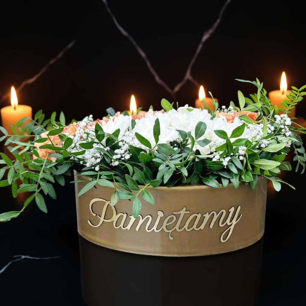Jednym z najbardziej wyróżniających się elementów tej doniczki nagrobnej jest napis „Pamiętamy”, wykonany z laminatu, który tworzy subtelny efekt 3D. Ten elegancki detal symbolizuje szacunek i troskę o pamięć zmarłych. Efekt 3D przyciąga wzrok i sprawia, że osłonka na cmentarz staje się wyjątkową ozdobą. Nowoczesna estetyka doniczki, z jej klasyczną formą, doskonale wpisuje się we współczesne trendy dekoracji cmentarzy. Doniczka na kwiatki jest nie tylko trwałym elementem, ale również wyrazem głębokiego szacunku, łącząc funkcjonalność z symbolicznym hołdem.