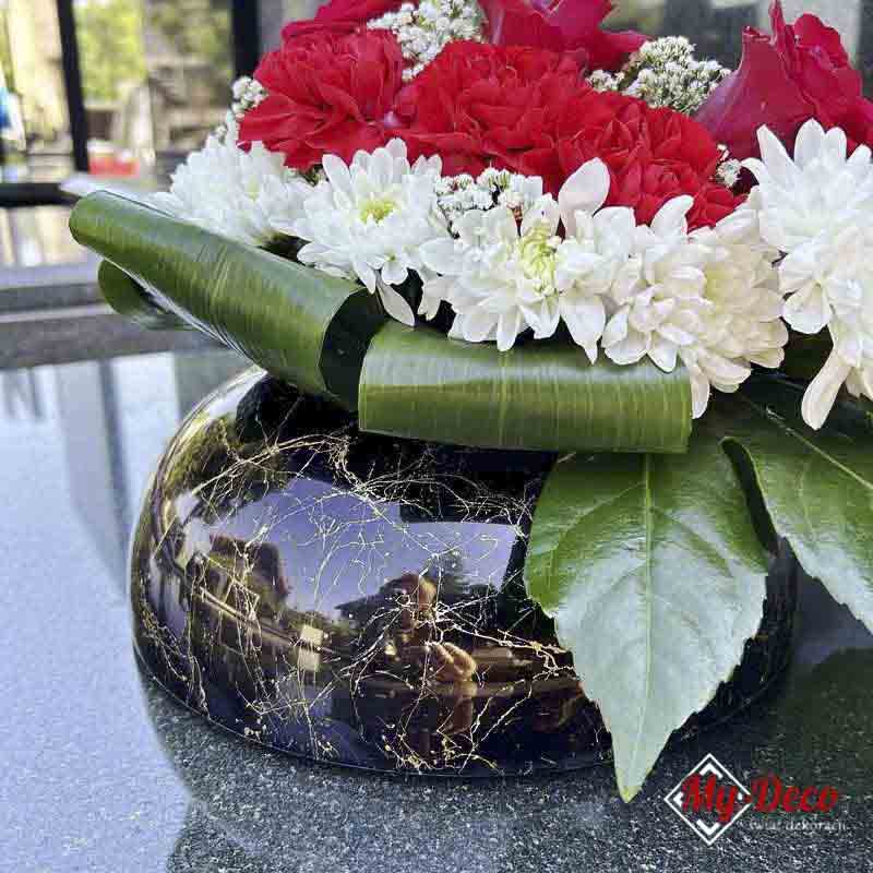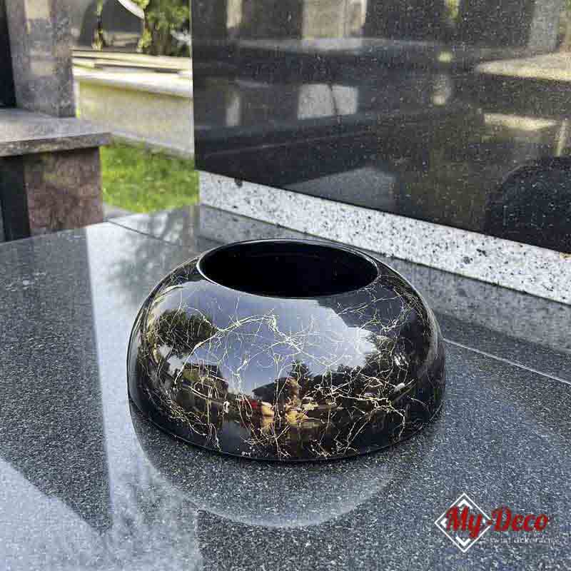 Okrągła Doniczka na Kwiaty na Grób czarno-złota MD886