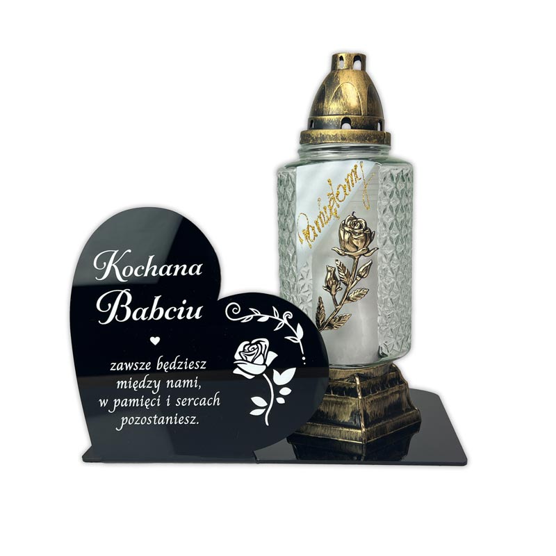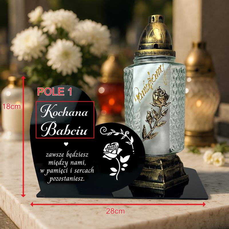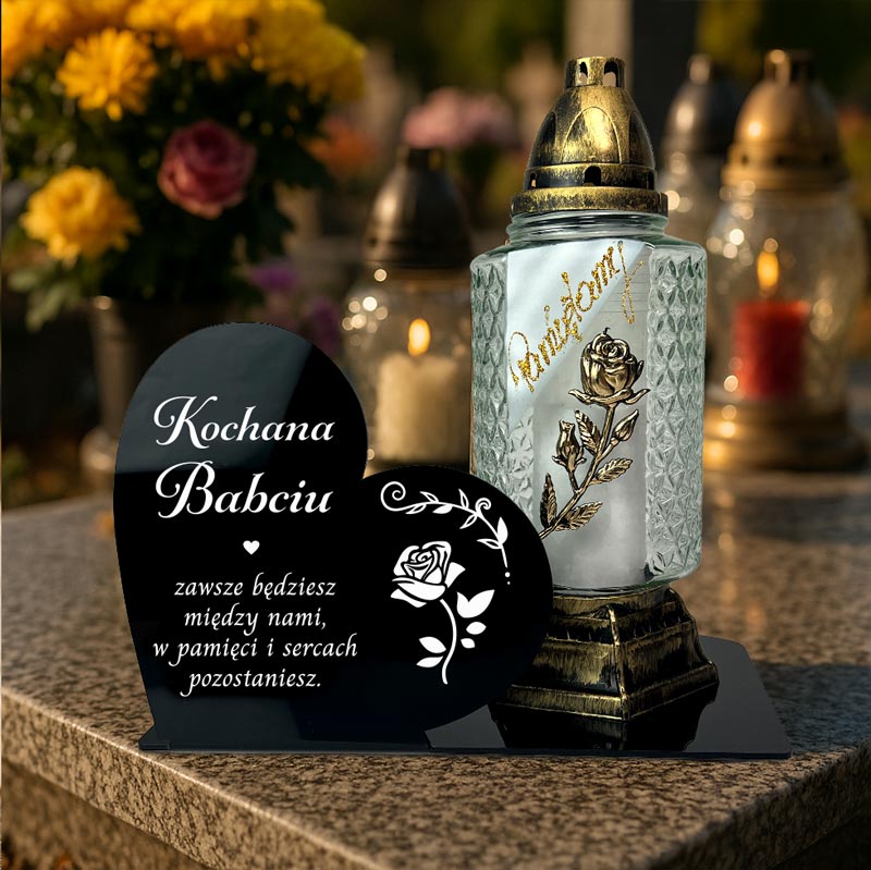 Statuetka na cmentarz serce dekoracja nagrobna dla babci. Z nadrukiem UV i miejscem na znicz, dekoracja nagrobna na wszystkich Świętych.