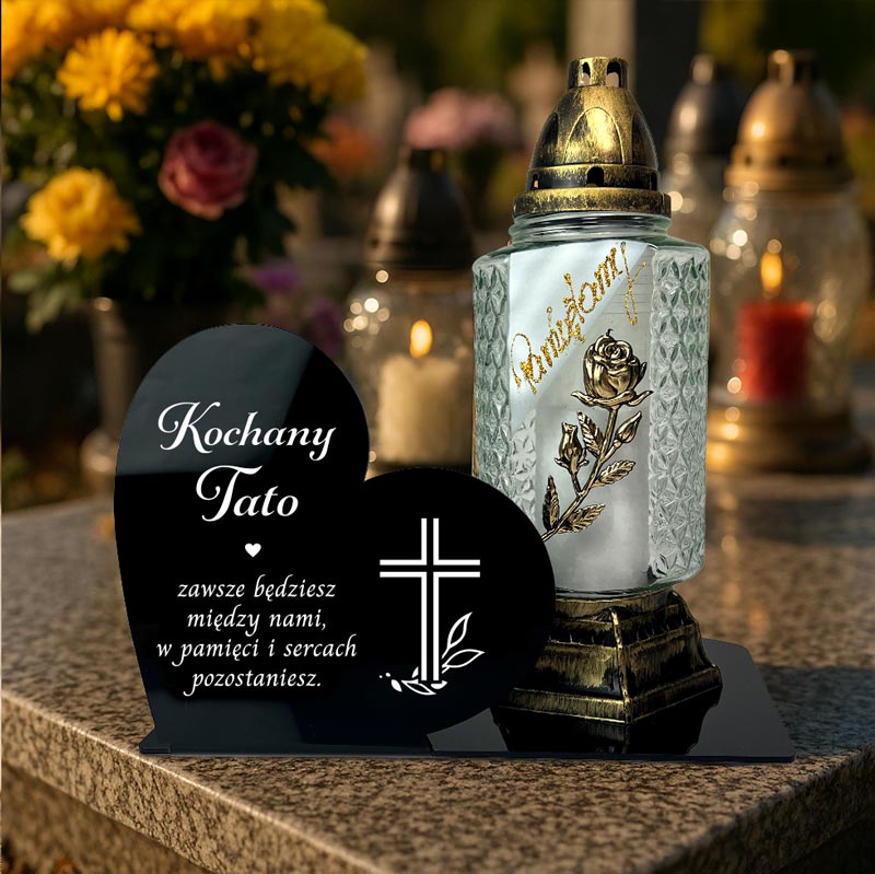 Zastosowanie technologii UV sprawia, że napisy i grafiki są trwałe, wyraziste i odporne na blaknięcie. Możesz wybrać wariant dedykacji, który najlepiej wyrazi Twoje uczucia – żal, pamięć, miłość i szacunek wobec osoby, której już z nami nie ma. Dzięki temu podstawka pod znicz w kształcie serca staje się nie tylko dekoracją na grób, ale i symbolicznym wyrazem więzi. Idealnie sprawdzi się na Wszystkich Świętych, rocznice, Dzień Matki, Dzień Ojca, Dzień Babci, Dziadka i inne szczególne okazje.