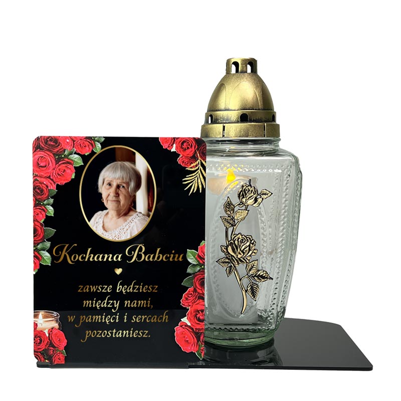 Statuetka Nagrobna ze Zdjęciem i Nadrukiem UV Czerwonych Róż