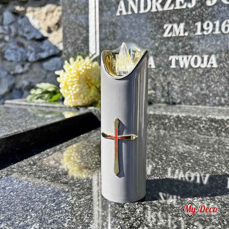 Świeczka wkład do znicza z efektem płomienia złoty krzyż MD929