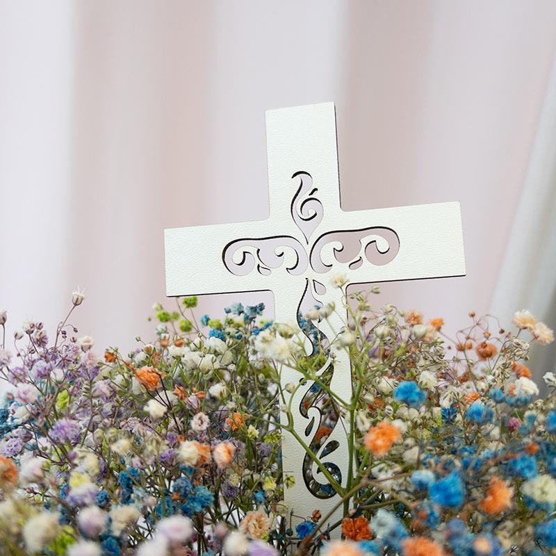 Topper Pik Krzyż Dekoracja Funeralna Kwiatów Kościoła biały, Dekoracja Kościoła na Chrzest i Komunię.