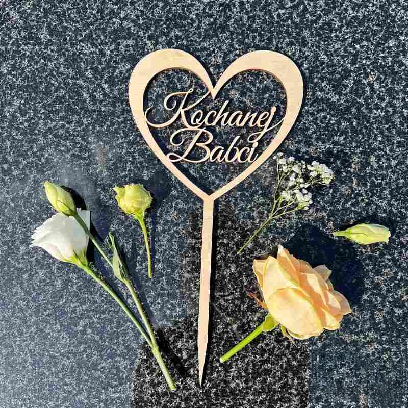 Topper „Kochanej Babci” został wykonany z wysokiej jakości sklejki, co nadaje mu wyjątkowy, elegancki wygląd, doskonale komponujący się z kwiatowymi kompozycjami. Drewniana struktura sklejki sprawia, że topper zyskuje ciepły, ale jednocześnie wyrazisty charakter, który idealnie pasuje do miejsca pamięci. Dzięki prostocie i elegancji kształtu serca topper wpisuje się w każdą aranżację, dodając jej osobistego i wzruszającego akcentu. To także idealny dodatek do dekoracji decoupage, scrapbooking oraz dekoracji do kwiatów, wiązanek oraz dekoracji cmentarnych.