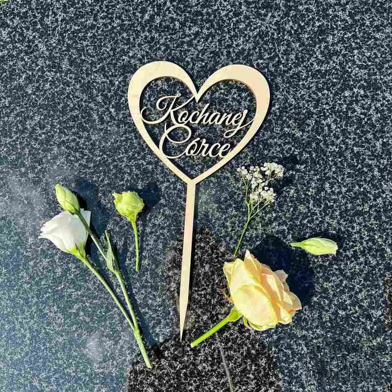 Topper na cmentarz – „Kochanej Córce” w kształcie serca Wyjątkowy topper z napisem pełen miłości i pamięci