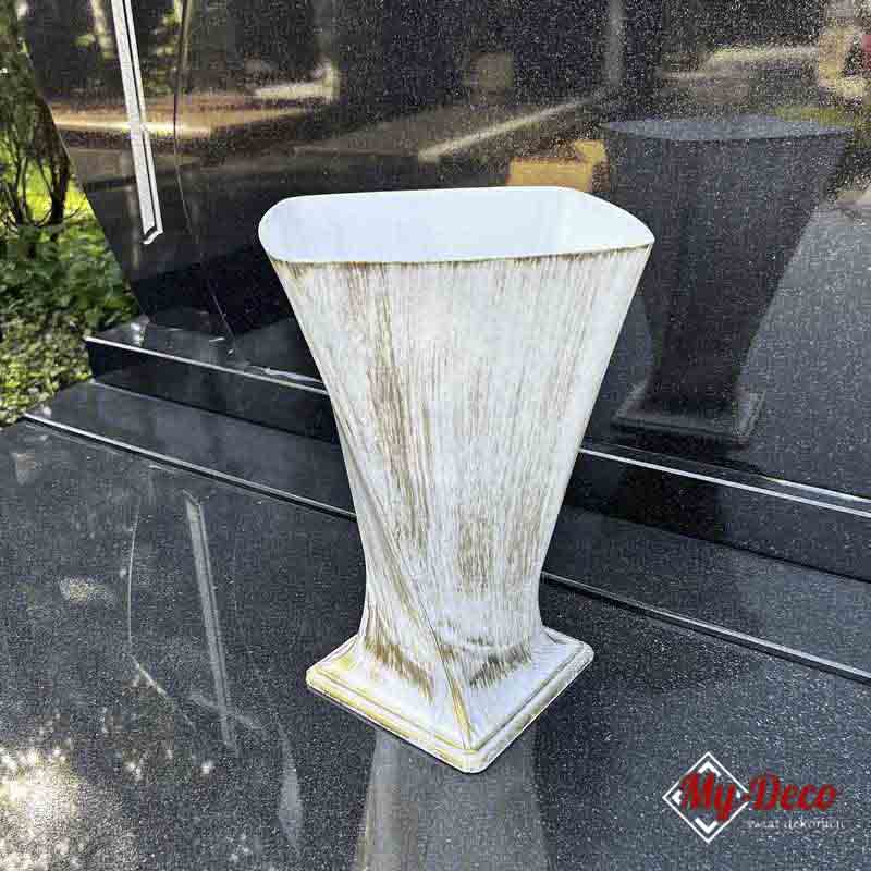 Wazon na grób dekoracja cmentarna na kwiaty biało-złota MD908