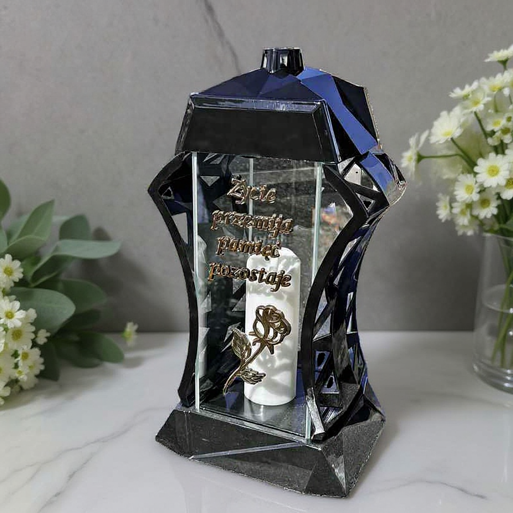 Ten elegancki znicz wzbogacony jest unikalną sentencją wyrażającą głębokie uczucia oraz delikatnym motywem róży. Zarówno sentencja, jak i kwiat są wykonane z trwałego tworzywa sztucznego, odpornego na działanie czynników zewnętrznych. Ten ozdobny znicz z różą doskonale oddaje nastrój zadumy i staje się wzruszającym wyrazem miłości oraz troski. Jego uniwersalny wygląd sprawia, że jest idealny na różne okazje – od Dnia Wszystkich Świętych po codzienne odwiedziny. Dzięki niemu każdy grób zyska wyjątkowy charakter, a pamięć o zmarłych będzie pielęgnowana z szacunkiem.